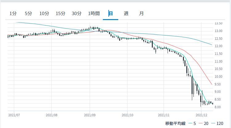 もう時間の問題で8円を割り込んで7円まで突入しそうな事態になっています