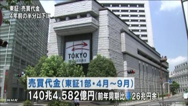 Åìµþ¾Ú·ô¼è°ú½ê¤Ë¤è¤ê¤Þ¤¹¤È¡¢¤³¤È¤·£´·î¤«¤éÀè·î¡¦£¹·î¤Þ¤Ç¤ËÅì¾ÚÂ裱Éô¤ÇÇäÇ㤵¤ì¤¿³ô¼°¤ÎÂå¶â¤Ï£±£´£°Ãû£´£µ£¸£²²¯±ß¤Ç¡¢Á°¤Îǯ¤ÎƱ¤¸»þ´ü¤ËÈæ¤Ù¤Æ£²£¶Ãû±ß;¤ê¾¯¤Ê¤¯¤Ê¤ê¤Þ¤·¤¿¡£¤³¤ì¤Ï¡¢¤¤¤ï¤æ¤ë¡Ö¥ê¡¼¥Þ¥ó¥·¥ç¥Ã¥¯¡×¤¬µ¯¤¤ëľÁ°¤Î£´Ç¯Á°¤ÎƱ¤¸»þ´ü¤ÎȾʬ°Ê²¼¤Ç¤·¤¿¡£
