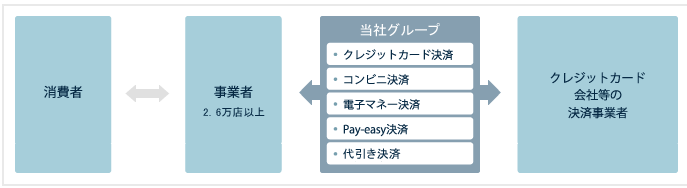 クレジットカード会社等の各種決済事業者との「契約」や「お金のやりとり」を代行する
