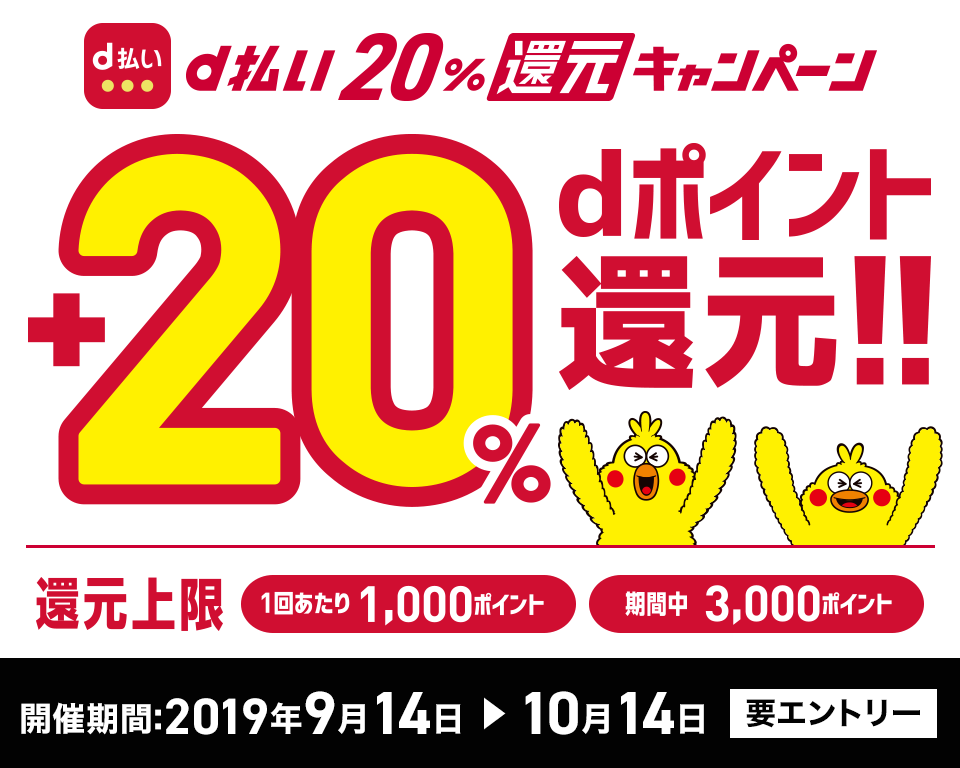 ドコモのd払い最大は9/14〜10/14までの1か月間で最大20%ポイント還元キャンペーンで