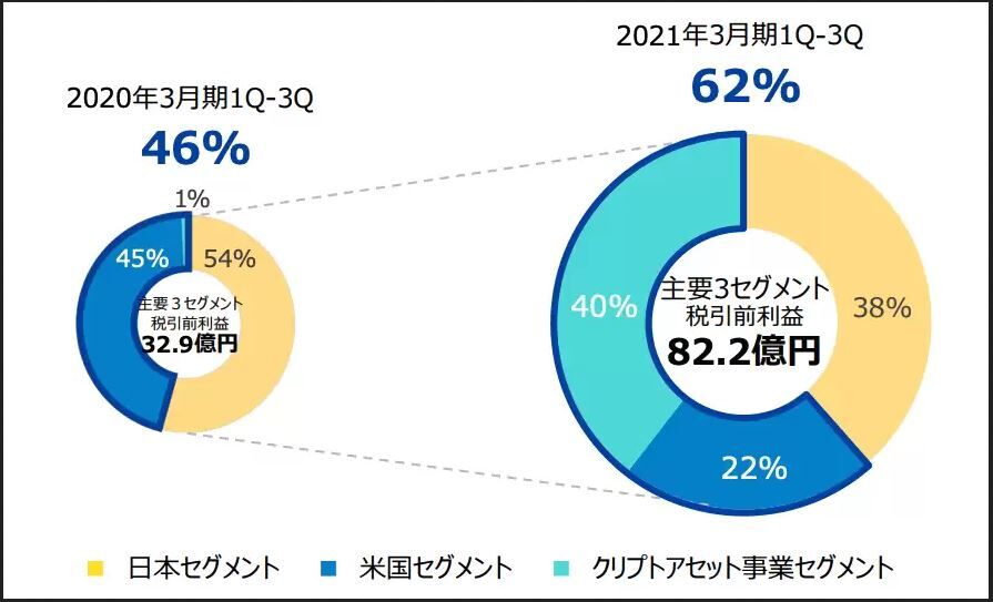 2021年1〜3月の四半期業績では全売上高130億円の内の50億円を仮想通貨で稼いでます。