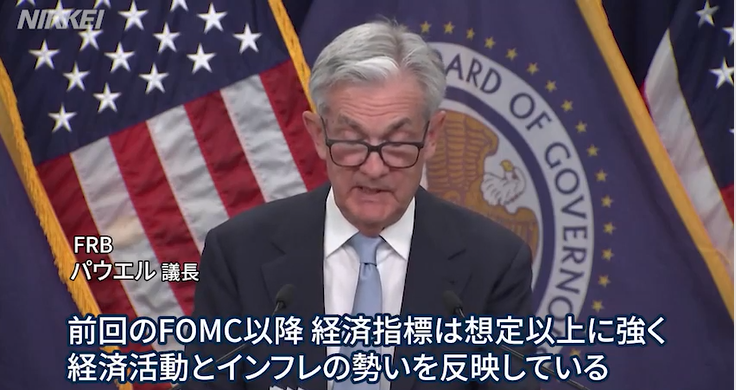 とか様々な憶測が事前に市場で出ていましたが、ECBのラガルド総裁が短期的な変動や憶測では金利政策を変動させないという方針で0.5%の利上げを実施したことに習って、パウエル議長も利上げを判断したようです。