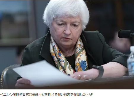 イエレン米財務長官が預金保護について「必要なら追加措置をとる用意がある」と発言し、安心感につながりました。金融システムを巡る不透明感は引き続き濃いものの、目先、危機的な状況に陥るとの警戒は和らいでいます pic.twitter.com/CYJGGW0Gv7