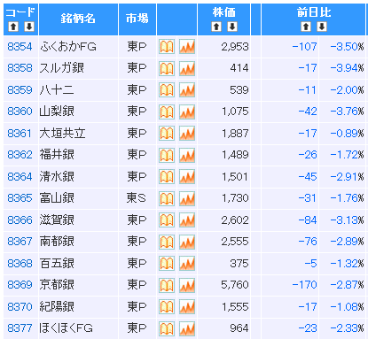 地銀はこれまで圧倒的に市場の資金を引き付けて上がってたけど明らかに勢いが減退