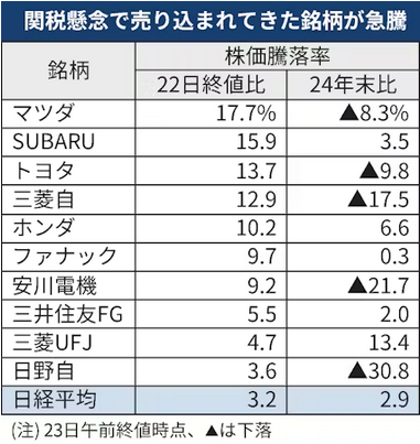 ¸áÁ°¤Î¼è°ú»þ´ÖÃæ¤Ë¤Ï¼«Æ°¼Ö´ØÀǤˤĤ¤¤Æ¤Ï¸½¹Ô¤Î25%¤ò12.5%¤Ë¤¹¤ë¤³¤È¤Ç¹ç°Õ¤·¤¿¤ÈÅÁ¤ï¤Ã¤¿¡£ÆüËܳô¤ÏÆÀª¤ò¶¯¤á¡¢¸á¸å¤Î¼è°ú¤â·øÄ´¤Ë¿ä°Ü¡£½ªÃͤÏÁ°ÆüÈæ1396±ß¡Ê3.51%¡Ë¹â¤Î4Ëü1171±ß¤È2024ǯ7·î°ÊÍèÌó1ǯ¤Ö¤ê¤Î¹âÃͤÀ¤Ã¤¿¡£
