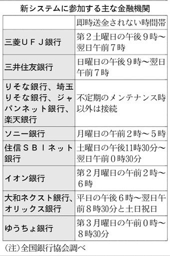 ¼ÂºÝ¤ËÌë´Ö¡¢µÙÆü¤Ë¿¶¤ê¹þ¤à¤Ë¤ÏÁ÷¶â¸µ¤È¿¶¹þÀè¤ÎÁÐÊý¤Î¶ä¹Ô¤¬¿·¥·¥¹¥Æ¥à¤ËÂбþ¤·¤Æ¤¤¤ë¤³¤È¤¬¾ò·ï¤È¤Ê¤ë¡£Á´¶ä¶¨¤ÎÄ´ºº¤Ç¤Ï¥·¥¹¥Æ¥àÀܳµ¡´Ø¤Î9³äͤ¬Ê¿Æü¡¦ÅÚÆü¤Î¾¯¤Ê¤¯¤È¤â¸á¸å9»þ¤Þ¤ÇÀܳ¡¢Ìó6³ä¤Ï24»þ´ÖÂбþ¤¹¤ë¤ÈÅú¤¨¤Æ¤¤¤ë¡£