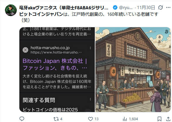 ¤Á¤Ê¤ß¤Ë¥Ó¥Ã¥È¥³¥¤¥ó¥¸¥ã¥Ñ¥ó¤Îµì¼Ò̾¤Ï¡ÖËÙÅÄ´ÝÀµ¡×¤È¤¤¤¦Á¡°Ý¾¦¼Ò¤À¤Ã¤¿¤è¤¦¤Ç¤¹